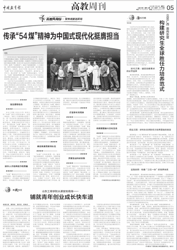 “54煤”經(jīng)驗(yàn)的重要一條,就是“他們尊敬教師,依靠教師,和教師建立了十分親密的關(guān)系”。“54煤”集體表現(xiàn)出了師生之間的熱愛、親密團(tuán)結(jié)及共同為祖國事業(yè)而集體勞動(dòng)的快樂精神。我們要弘揚(yáng)“54煤”精神中“刻苦學(xué)習(xí)、尊師重道”的優(yōu)良品質(zhì),大力弘揚(yáng)教育家精神,深入實(shí)施教育家精神鑄魂強(qiáng)師行動(dòng),堅(jiān)持把師德師風(fēng)作為教師評(píng)價(jià)的第一標(biāo)準(zhǔn),牢固樹立“以學(xué)生成長為中心”的教育理念,引導(dǎo)廣大教師履行好教書育人第一職責(zé),做學(xué)生為學(xué)、為人、為事的“大先生”。要進(jìn)一步完善校院兩級(jí)教師教學(xué)發(fā)展工作機(jī)制,提高教師培養(yǎng)培訓(xùn)質(zhì)量,加大表彰激勵(lì)力度,健全符合新時(shí)代好老師標(biāo)準(zhǔn)的教師評(píng)價(jià)體系,培養(yǎng)造就一大批高水平師資和學(xué)術(shù)大師。
