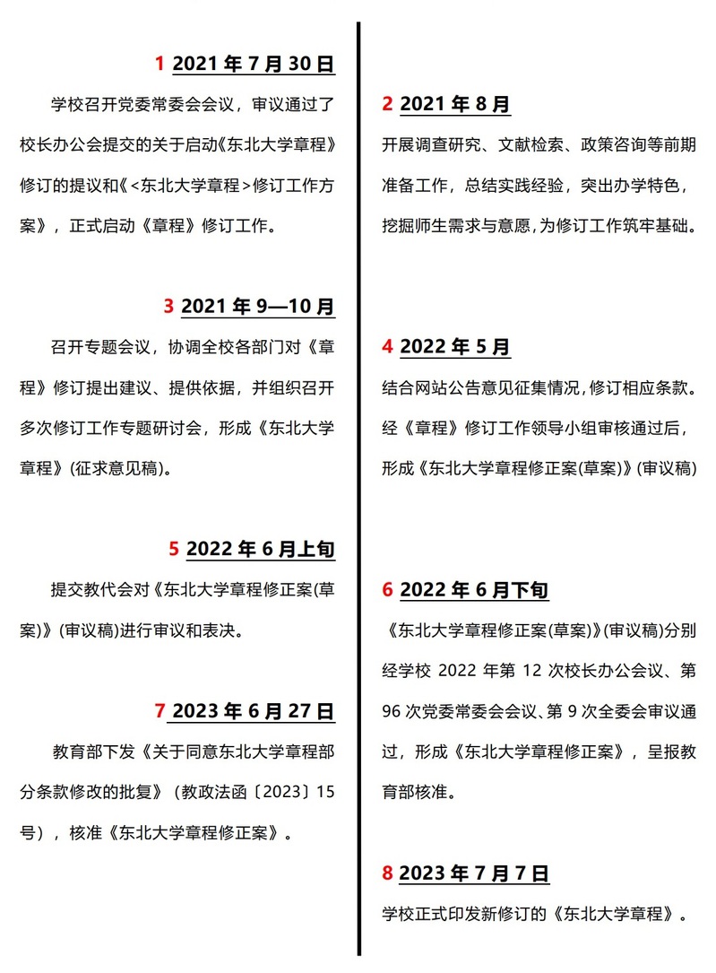 更多...原《東北大學(xué)章程》(以下簡(jiǎn)稱《章程》)于2014年6月經(jīng)教育部核準(zhǔn)發(fā)布,經(jīng)過多年實(shí)施,有些條款已不適應(yīng)新時(shí)代黨和國(guó)家對(duì)高等教育的新要求。為深入貫徹習(xí)近平新時(shí)代中國(guó)特色社會(huì)主義思想,特別是習(xí)近平法治思想和習(xí)近平總書記關(guān)于教育的重要論述,貫徹落實(shí)十八大以來黨中央、國(guó)務(wù)院就高等教育改革發(fā)展作出的一系列新的決策部署,貫徹落實(shí)全國(guó)教育大會(huì)、全國(guó)高校思想政治工作會(huì)議等精神,進(jìn)一步提高學(xué)校治理體系和治理能力現(xiàn)代化水平,...